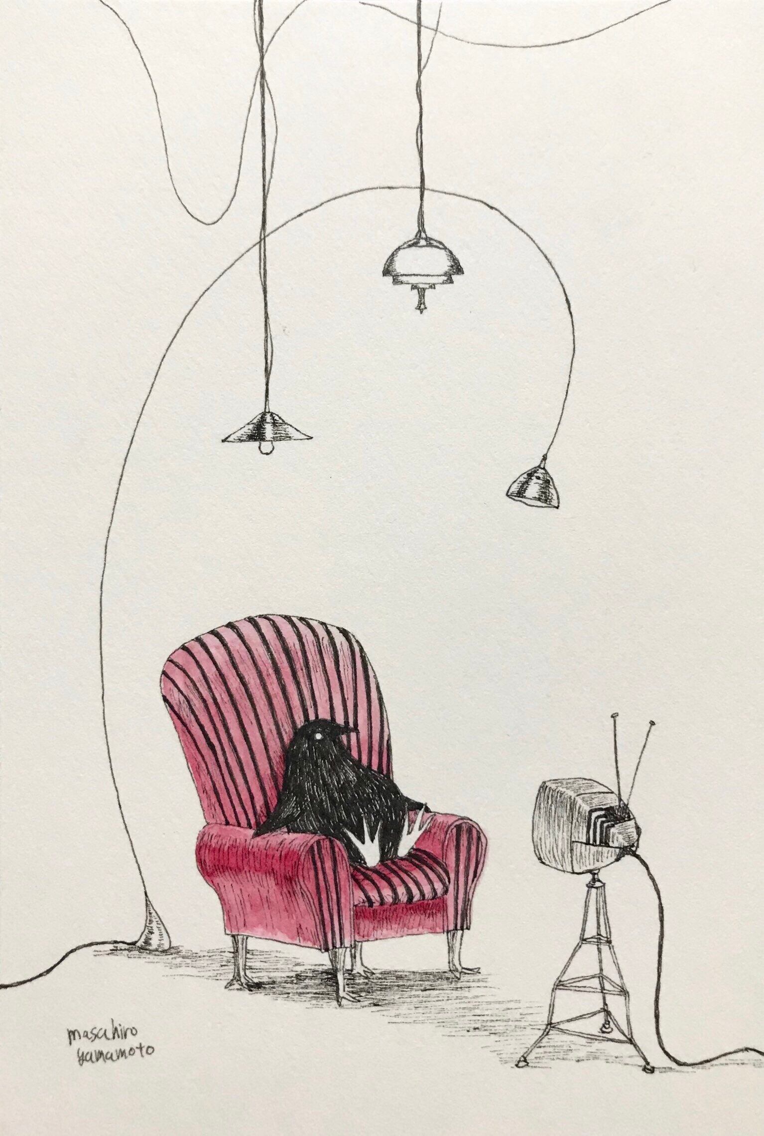 「赤い椅子のリビング」(原画)