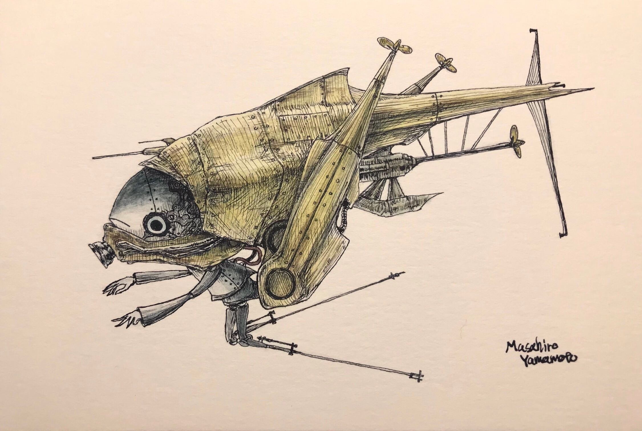 ペン、水彩絵具