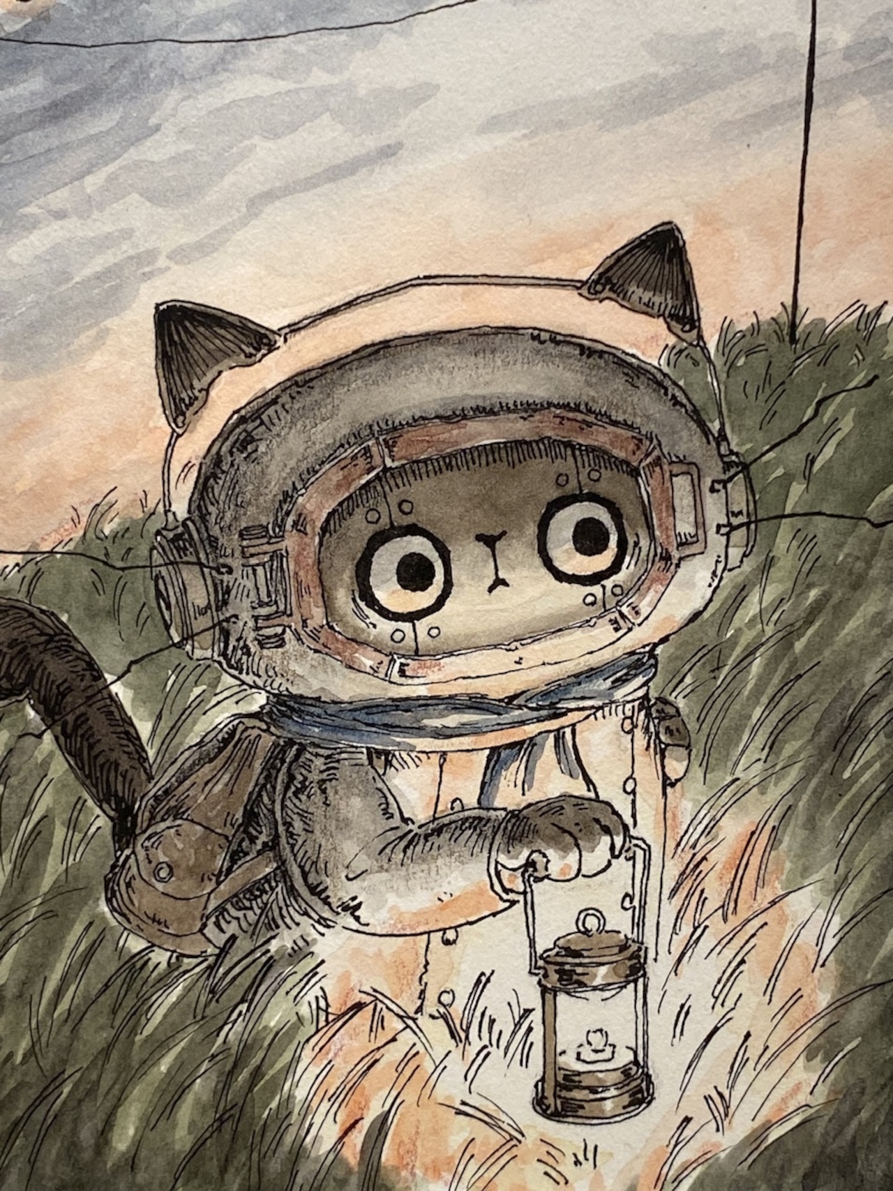 画材 : 水彩絵具、万年筆(カーボンインク)、色鉛筆