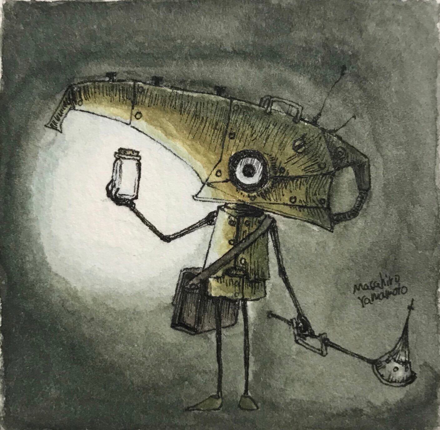 ペン、水彩絵具