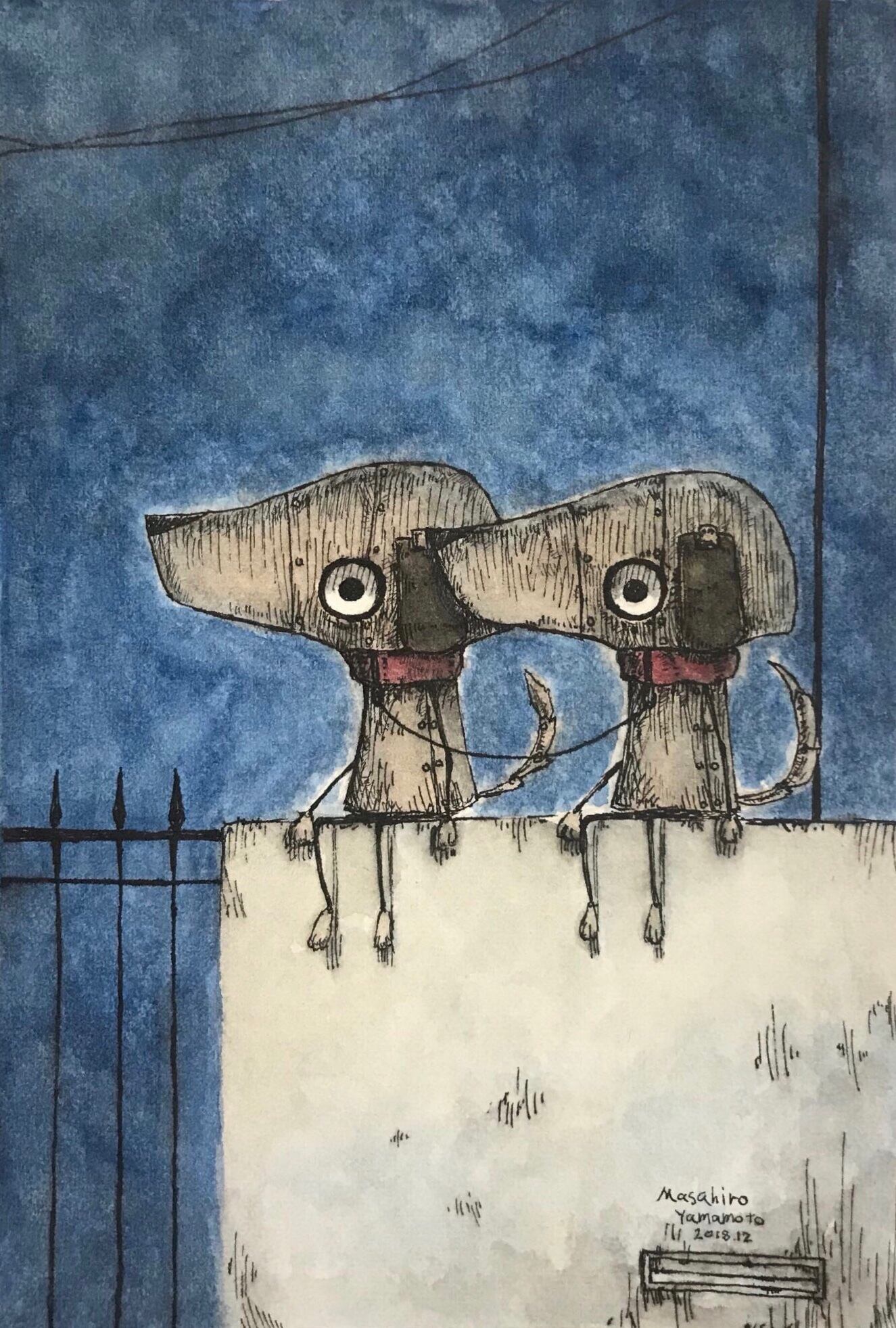 塀の上の双子(原画)