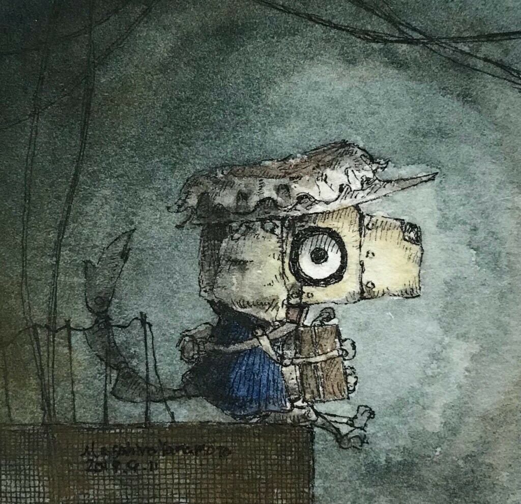 ペン、水彩絵具