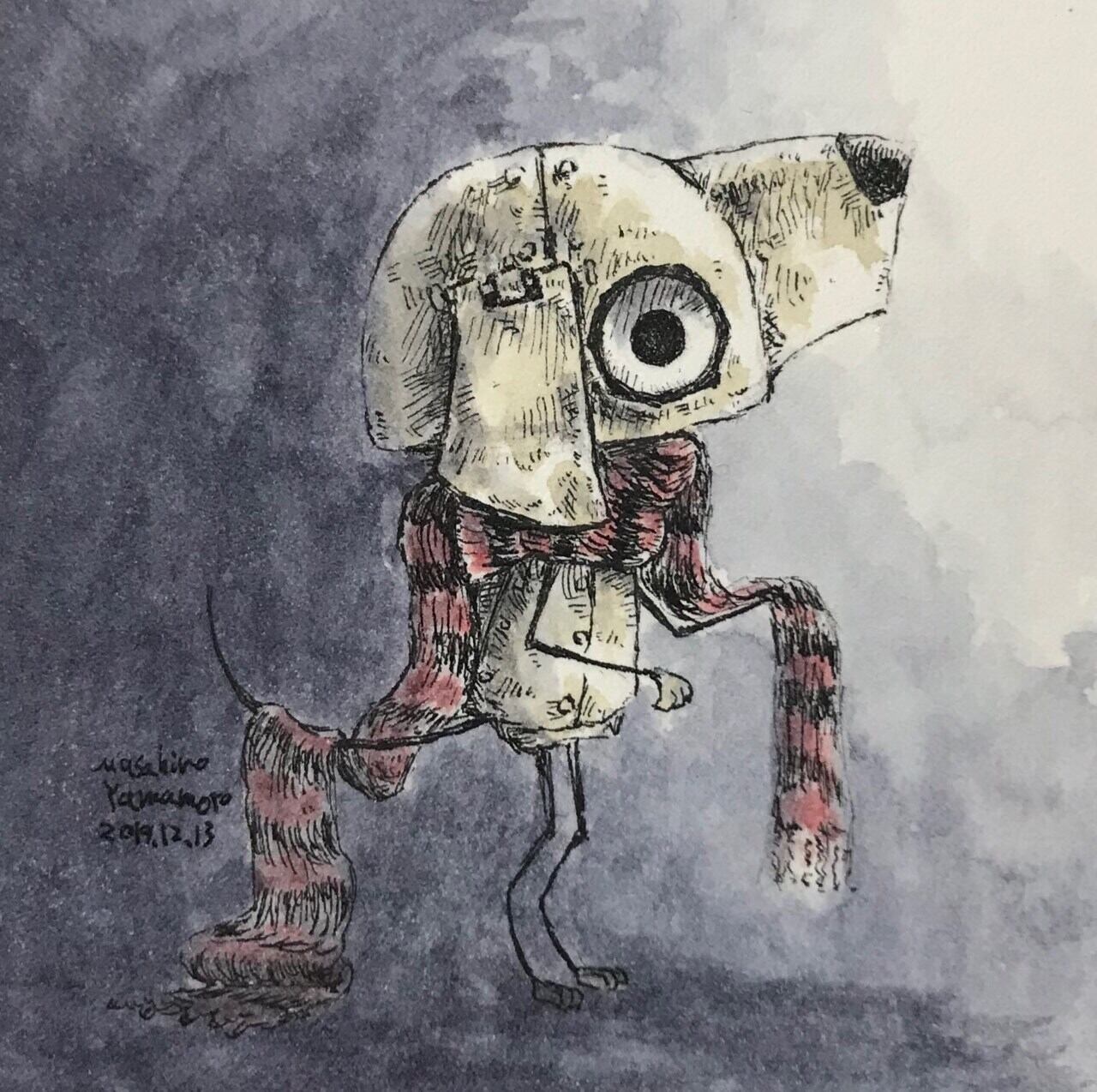 ペン、水彩絵具
