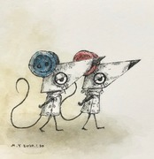 ペン、水彩絵具