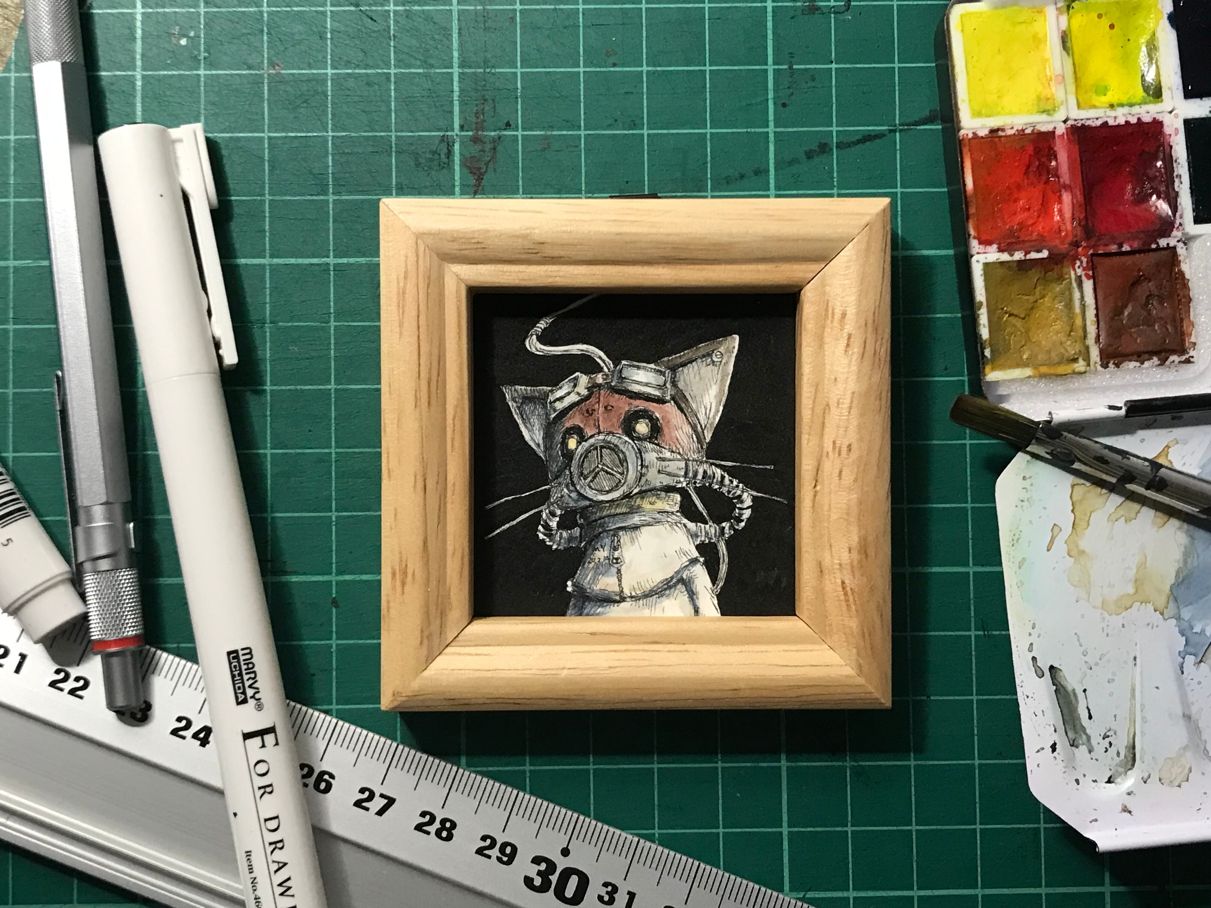 木製フレームに着色(※2枚目以降に名刺サイズとの比較画像有)