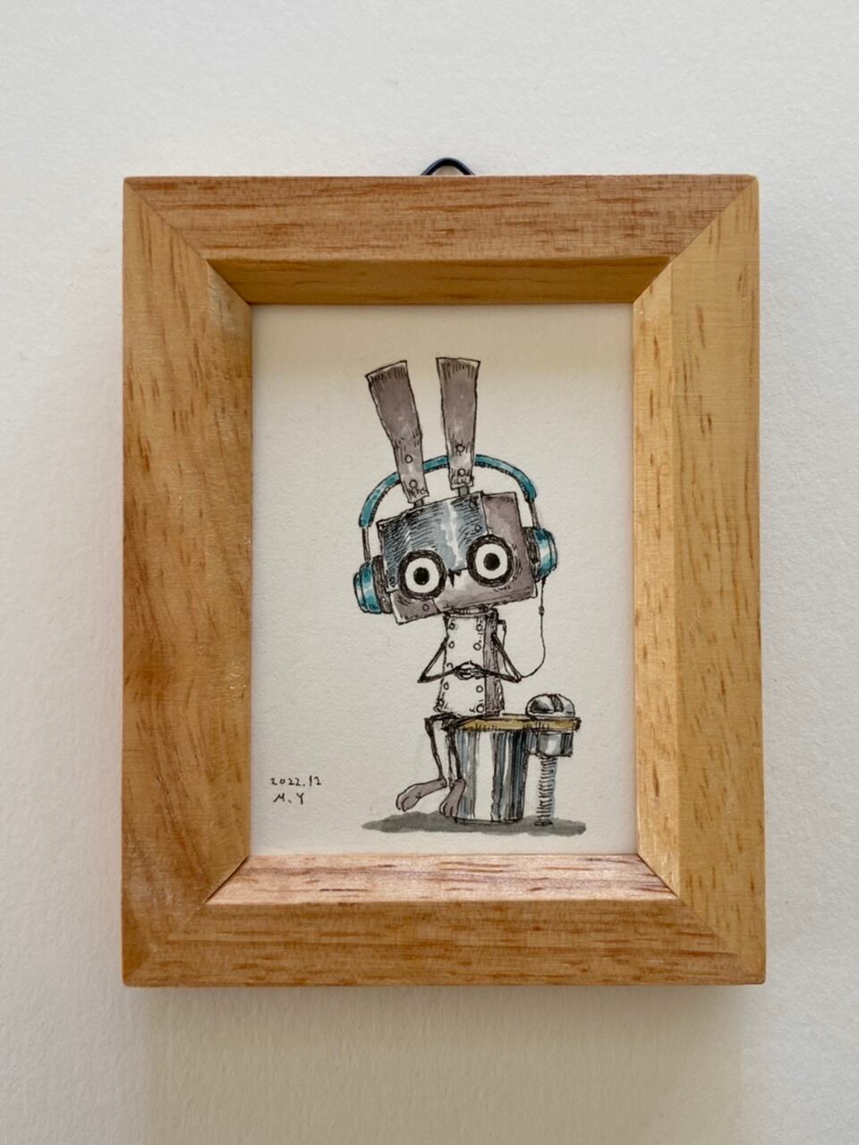 【原画】ミニフレーム うさぎ、音楽鑑賞