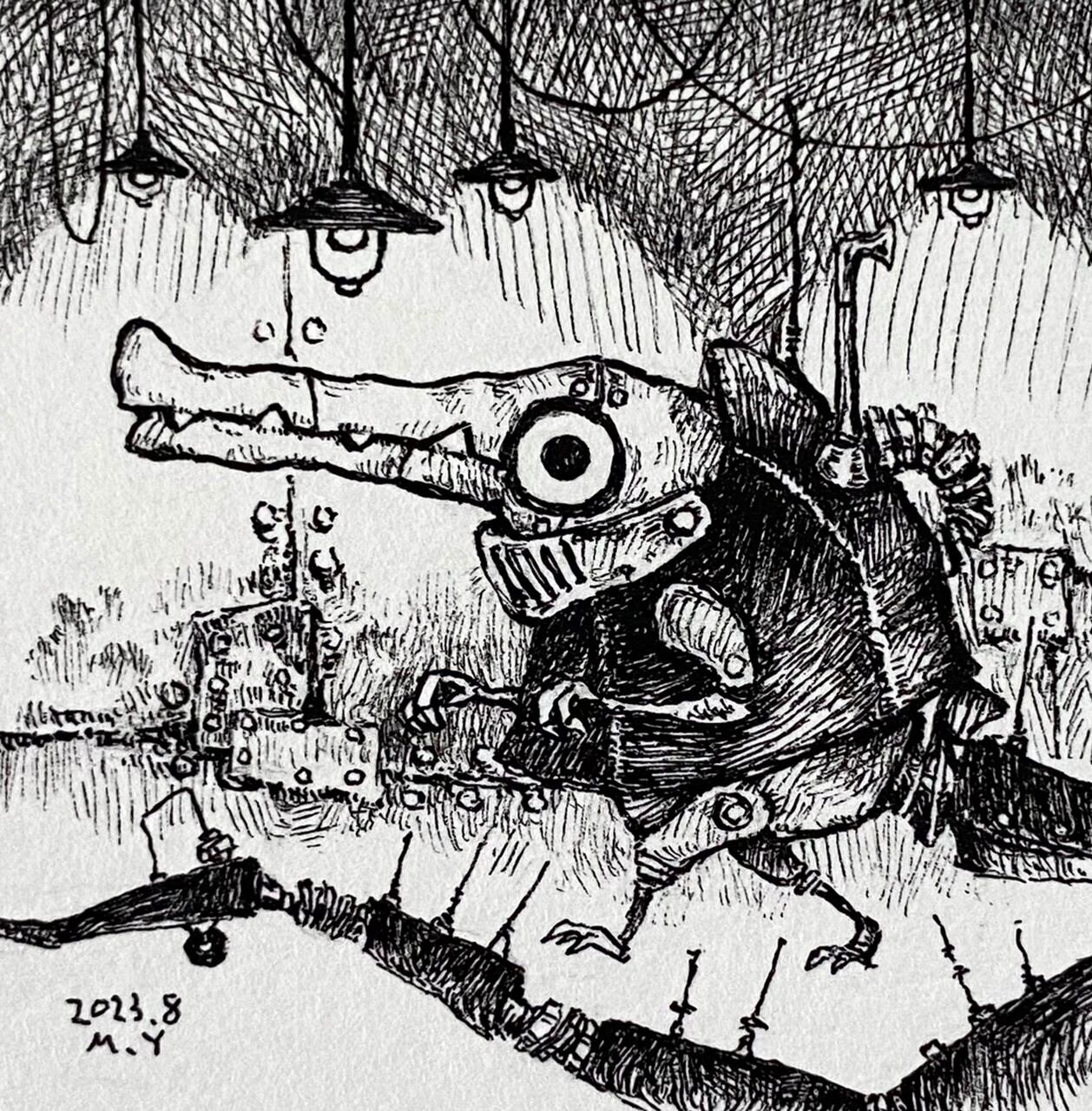 【原画】地下道を進むワニ